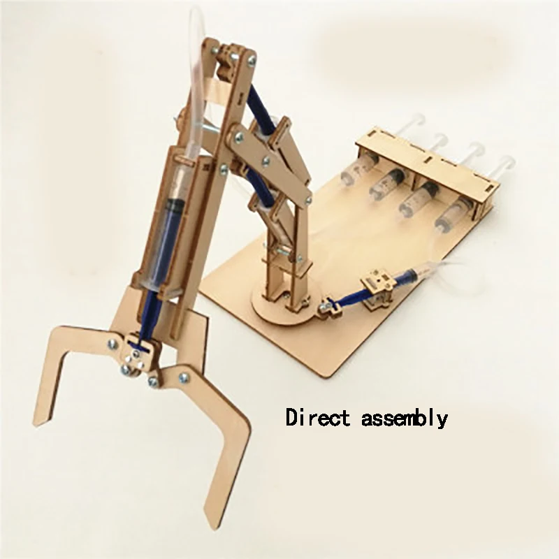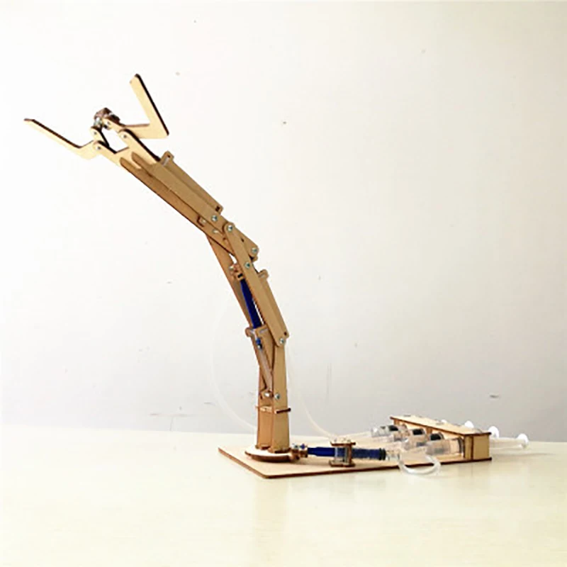 free shipping Modello di robot di legno kit Idraulico Braccio Meccanico Tecnologia Fai Da Te Ragazzi Giocattoli P