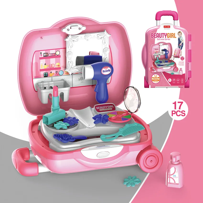 Little Girls Play Makeup Set - Pretend Salon Beauty Makeup Kit for Toddlers Kids Vanity Case Dress Up Toys Travel Playset