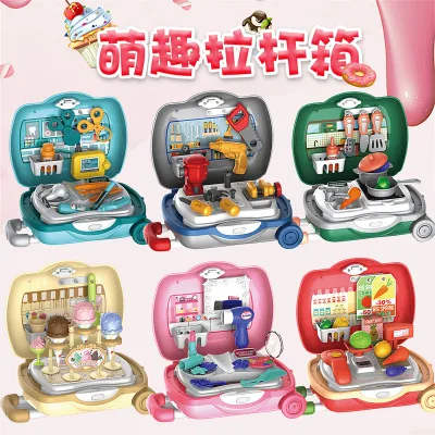 free shipping 6 Styles trunk Simulation Kitchen Toys Set BBQ Children Pretend Play Tool Box Pack Kids Doctor Toy
